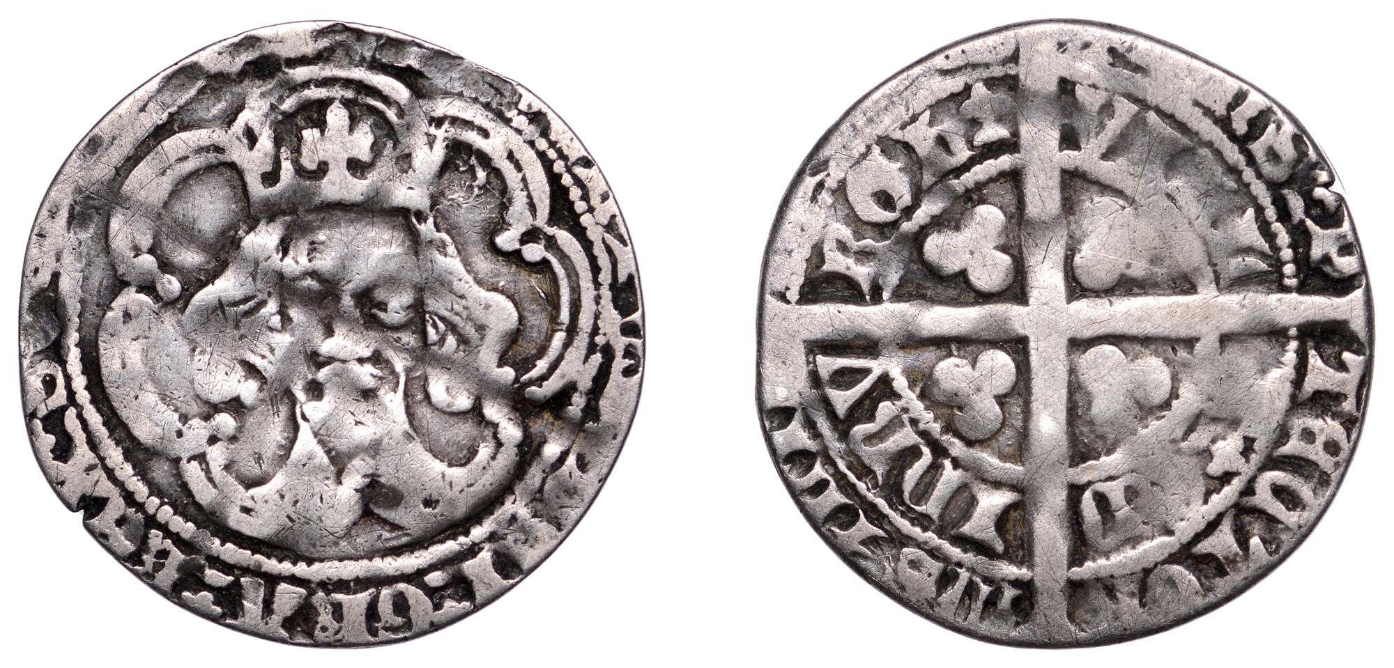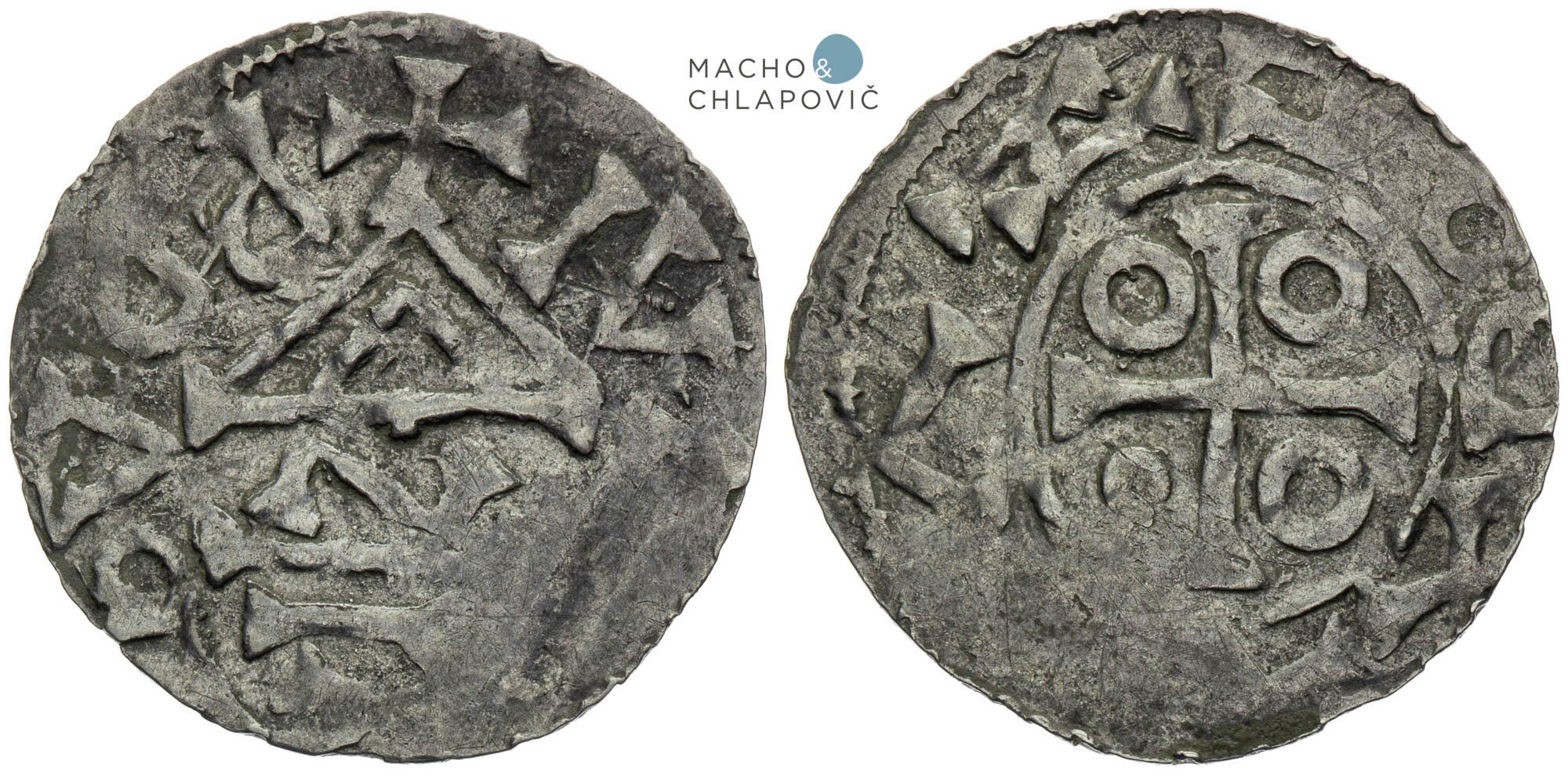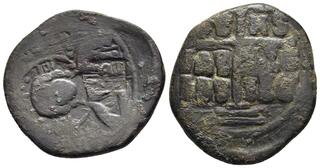 R/. + XPS : VINCIT : XPC : REGNAT : XPC : IMPERAT (ancre). (ponctuation par des annelets à l'avers et au revers). Croix aux bras trifides cantonnée de deux L et de deux porcs-épics.