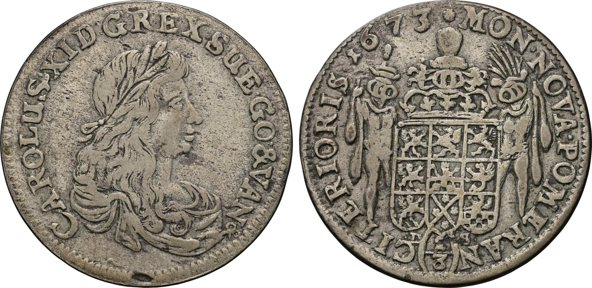 SWEDEN. Pomerania. 1/3 Taler, 1673-DS. Stettin Mint. Karl XI. NGC VF-30.