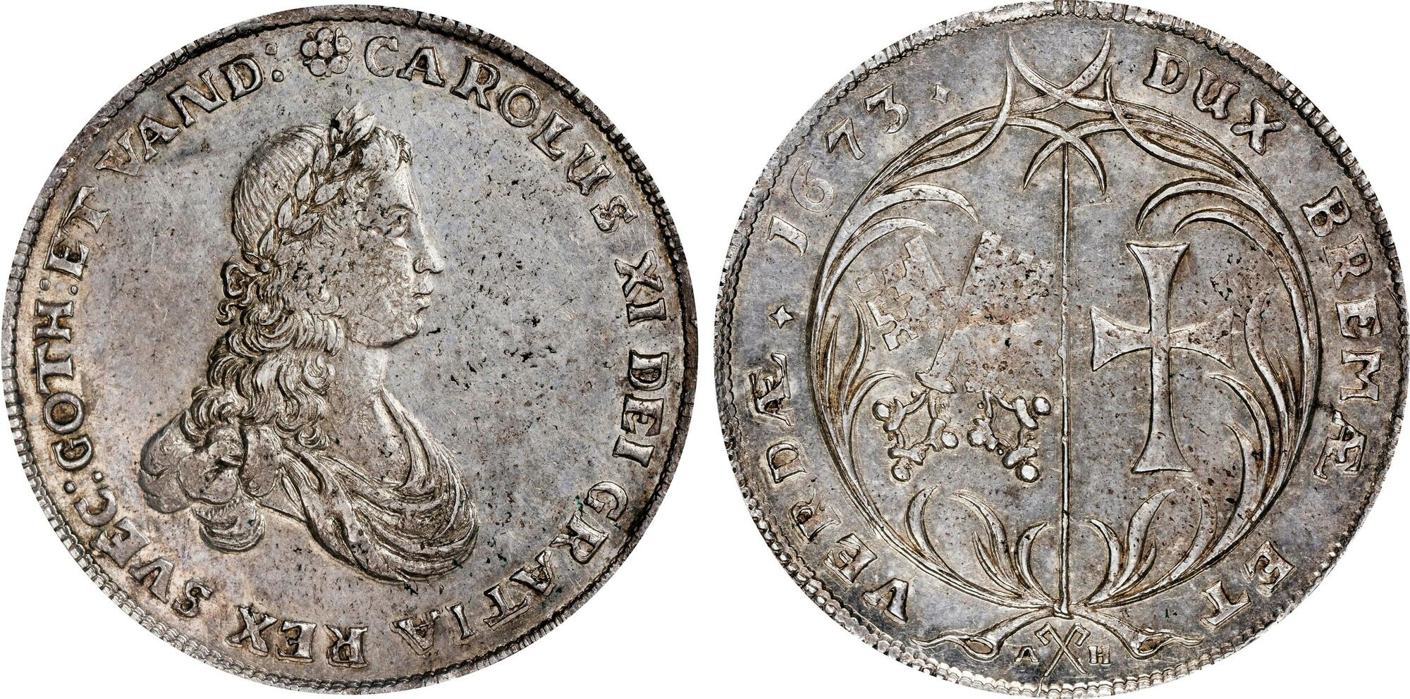 SWEDEN. Bremen & Verden. 1/24 Taler, 1673-AH. Stade Mint. Karl XI. NGC EF-40.