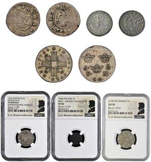 SWEDEN. Trio of silver issues (3 Pieces), 1623-1748. All NGC certified.