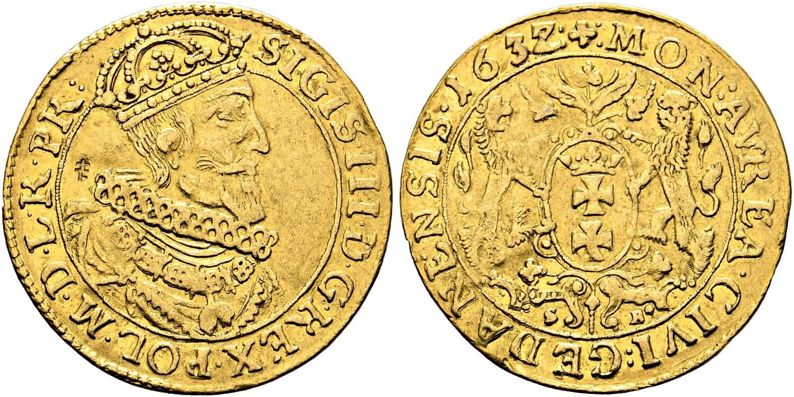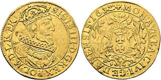 Dukat (3,41g) 1632 SB Danzig Jahreszahl im Stempel aus 1631 umgeschnitten. Mit Potocki Sammlerzeichen (Pilawa) im Avers winz. Randfehler R - Fr. 10; Kopicki 7544 - s.sch.