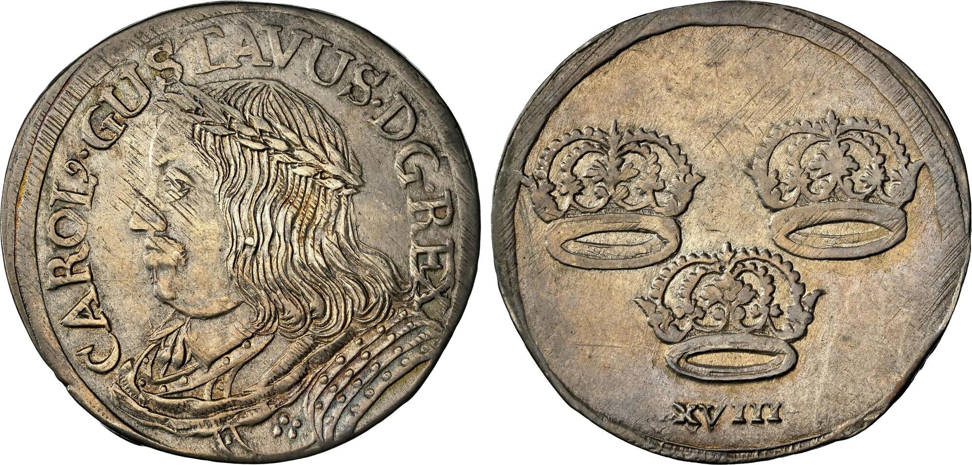SWEDEN. Thorn. 18 Groschen, ND (1656). Thorn Mint. Karl X Gustaf. NGC AU-58.