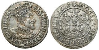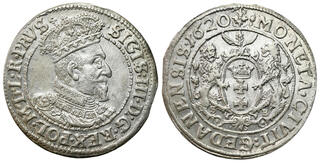 Ort wybity w 1619 roku z wizerunkiem króla rytowanym przez Samuela Ammona. Na rewersie litery ... | 13 Dec 2025 | 2,250 PLN | |