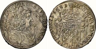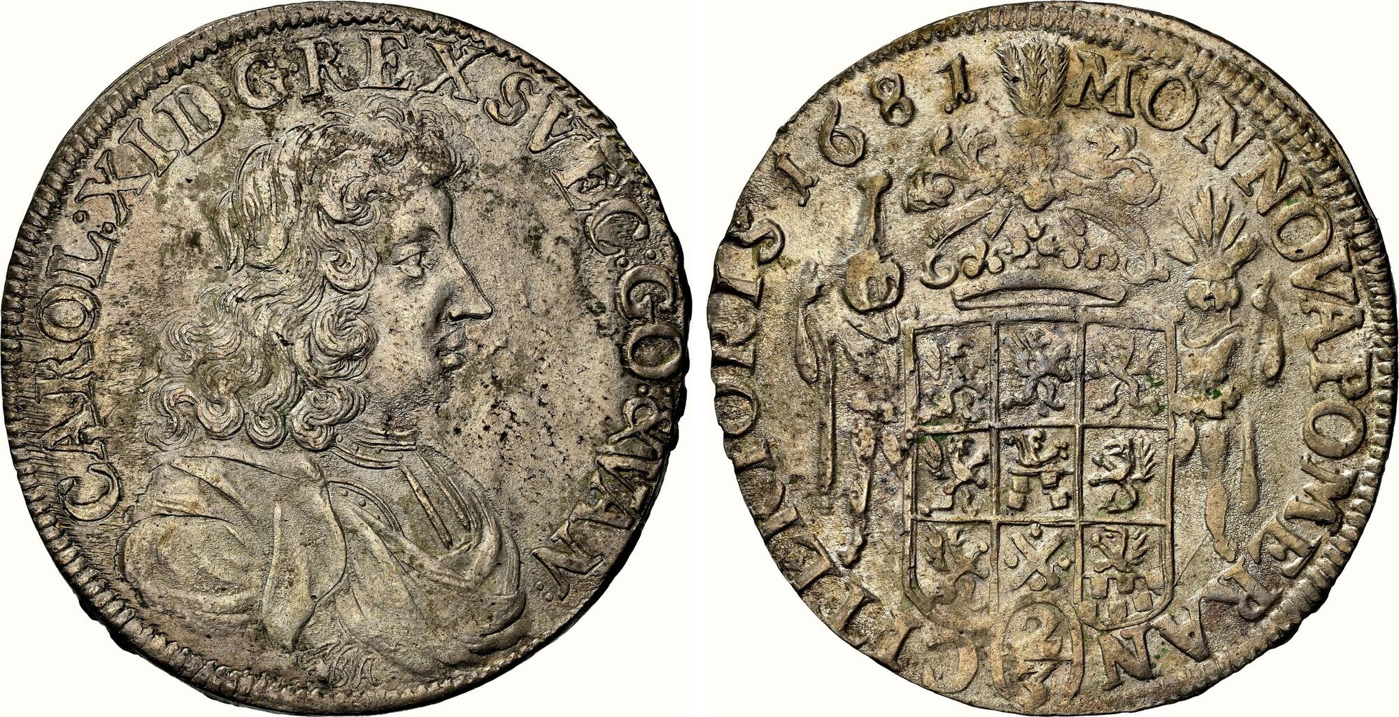 SWEDEN. Pomerania. 2/3 Taler (Zweidrittel), 1681-BA. Stettin Mint. Karl XI. NGC AU-55.