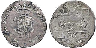 ZECCHE ITALIANE - URBINO - Francesco Maria II della Rovere (1574-1624) - Grosso CNI 9; Cav. 222 (AG g. 1,16)modulo stretto Tondello ondulato
