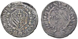 URBINO Francesco Maria II (1574-1624) Grosso di modulo largo, variante con caratteri piccoli - Cavicchi 220 AG (g 2,29) Lieve piegatura di tondello
