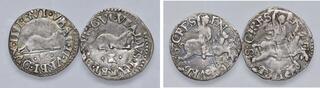 URBINO Francesco Maria II (1574-1624) Grosso di modulo largo, variante con caratteri piccoli - Cavicchi 220 AG Lotto di due esemplari