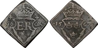 KM-230; SM-222A; Delzanno-372; Bruun-12170. Very rare example of this variation with moneyer Göran wagner's initials.