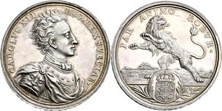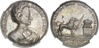 Charles XII (1697-1718). Médaille d'argent, Confiance et Foi en Dieu du roi Charles XII, par David Gehrard von Hachten 1715. NGC AU 53 (6771270-002).