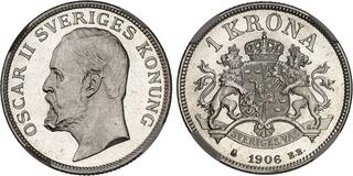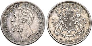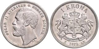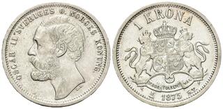 1 Krona 1881, Stockholm. Münzmeister Emil Brusewitz. Mit der Signatur LA (Lea Ahlborn, Stempelschneiderin in Stockholm). 7.48 g. Delzanno 40. AAH 67. Selten in dieser Erhaltung / Rare in this condition. Feine Patina / Nicely toned. Vorzüglich-FDC / About Uncirculated.