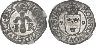 Jean III (1568-1592). 1/2 öre, 4e type [15]79, Stockholm. NGC MS 63 (6872080-004).