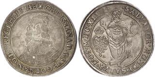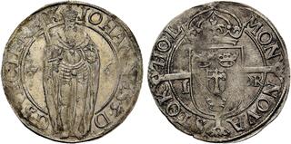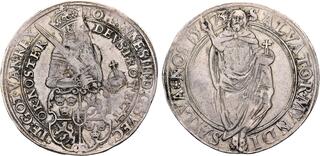Sweden - 1 Daler 1573, Silver, JOHAN III 1568–1592 Stockholm mint. Half length portrait to right holding sword over coat of arms. Rev. Christ standing holding orb.Dav. 8705. SM 34a; Delz. 13.29.00 g. Somewhat uneven toning. Pleasant specimen, 1+. Very fine +