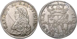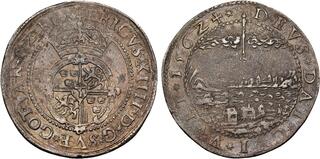 Sweden - 1 Mark 1564, ERIK XIV 1560–1568 Stockholm mint. Bust right. Rev Crowned coat of arms.SM 24; Delz 35 (RRR).Ex Misab 41 (2022), ex Ahlström 36 (1987). Ordningstalet för Erik går på grund av dubbelprägling att tyda från allt ifrån XIIII till XIIIIIII. Högersidan på alla I är tydligt markerade, men et I från ett tidigare slag illkommer efter sista I:et i sista präglingen varav ordningstalet kan uppfattas som XIIIII (15). För närvarande är tre exemplar av denna ¨variant¨ enligt Falkenssons... | 28 Mar 2026 | 1,300 EUR | |