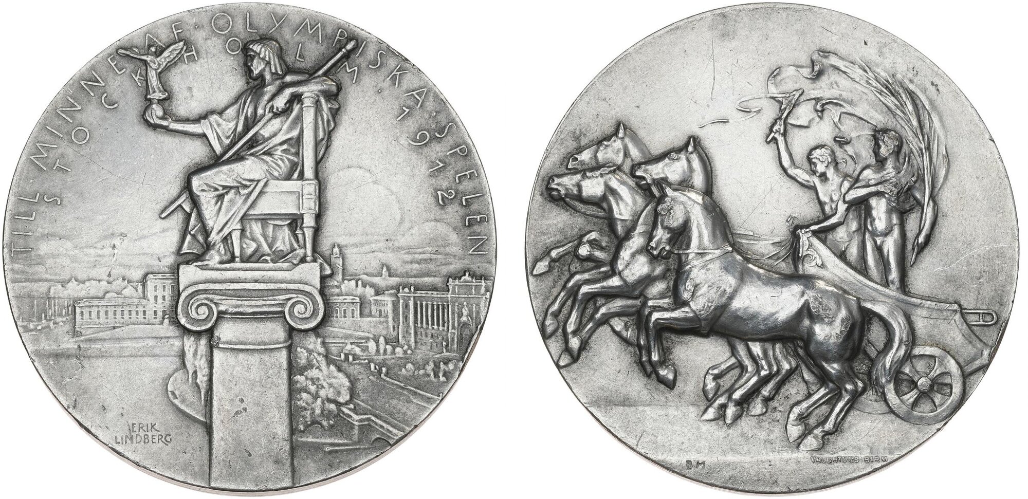 Sweden, Olympic Games in Stockholm 1912, participant's medal, by Bertram MacKennal and Erik Lindberg, pewter, 51 mm, 46.11 g