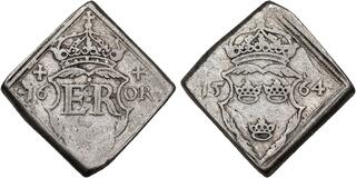 Sweden - 16 Öre 1564, Silver, ERIK XIV 1560–1568 Stockholm mint. Crowned shield, ER inside, dividing denomination. Rev. Crowned shield, three crowns inside, dividing date.SM 45; Delz. 67.23.57 g. 1/1+. Very fine