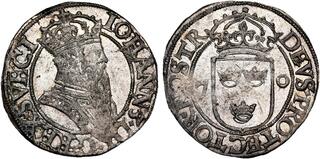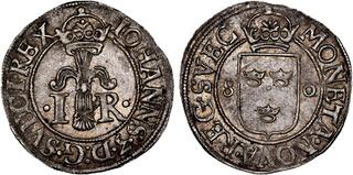 Av. IOHANNS. 3. D/ G. SVECI.REX. Sous une couronne, la gerbe de blé, symbole des Vasa, accostée de I - R.