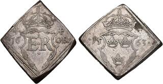 Sweden - 16 Öre 1563, Silver, ERIK XIV 1560–1568 Stockholm mint. Crowned shield, ER inside, dividing denomination. Rev. Crowned shield, three crowns inside, dividing date.SM 44d; Delz. 65.22.29 g. Partly weakly struck. 1/1+)(1. Nearly very fine