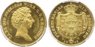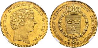 Dukat 1821, Stockholm. Münzmeister Lars Bergencreutz. Delzanno 18. AAH 16. Fr. 84. Prachtvolle Erhaltung / Magnificent condition. NGC MS64.