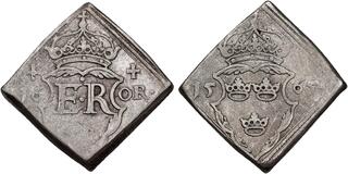 Sweden - 16 Öre 1568, Silver, ERIK XIV 1560–1568 Stockholm mint. Crowned shield, ER inside, dividing denomination. Rev. Crowned shield, three crowns inside, dividing date.SM 49; Delz. 72 (R).23.07 g. Better date. Cleaned. Corroded. 1+.