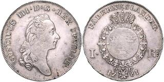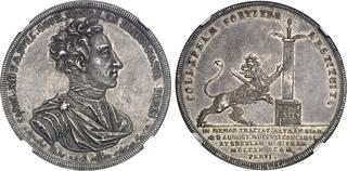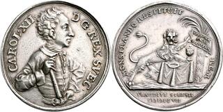 Rv. COLLAPSAM FORTITER - RESTITUIT. Le lion de Suède armé et couronné, appuyé sur une colonne avec piédestal in... | 13 May 2026 | Upcoming Auction | |