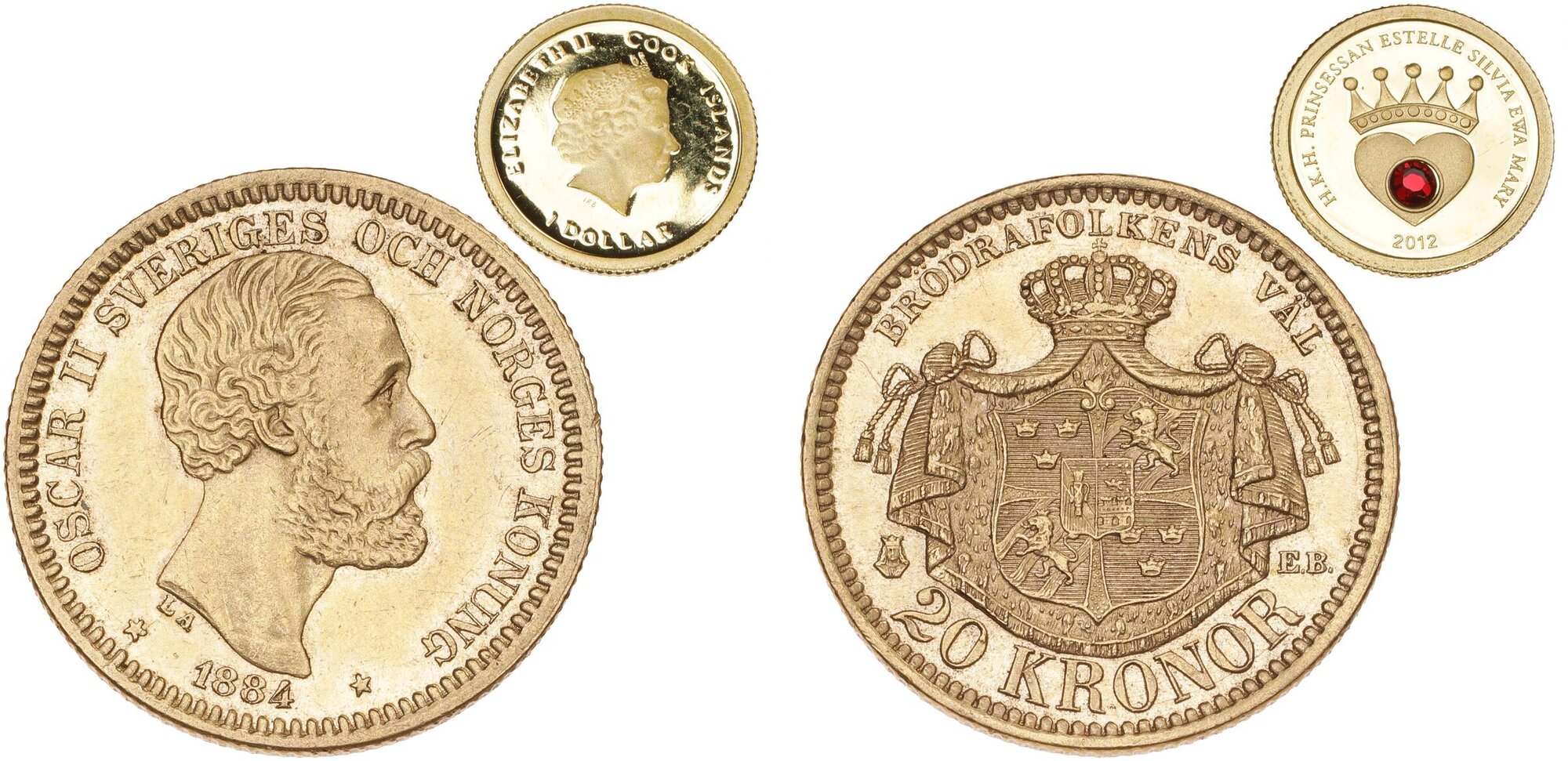 Sweden, Oscar II, 20 kr 1884, SM 12, F 93; Cook Islands, dollar 2012, KM 1961