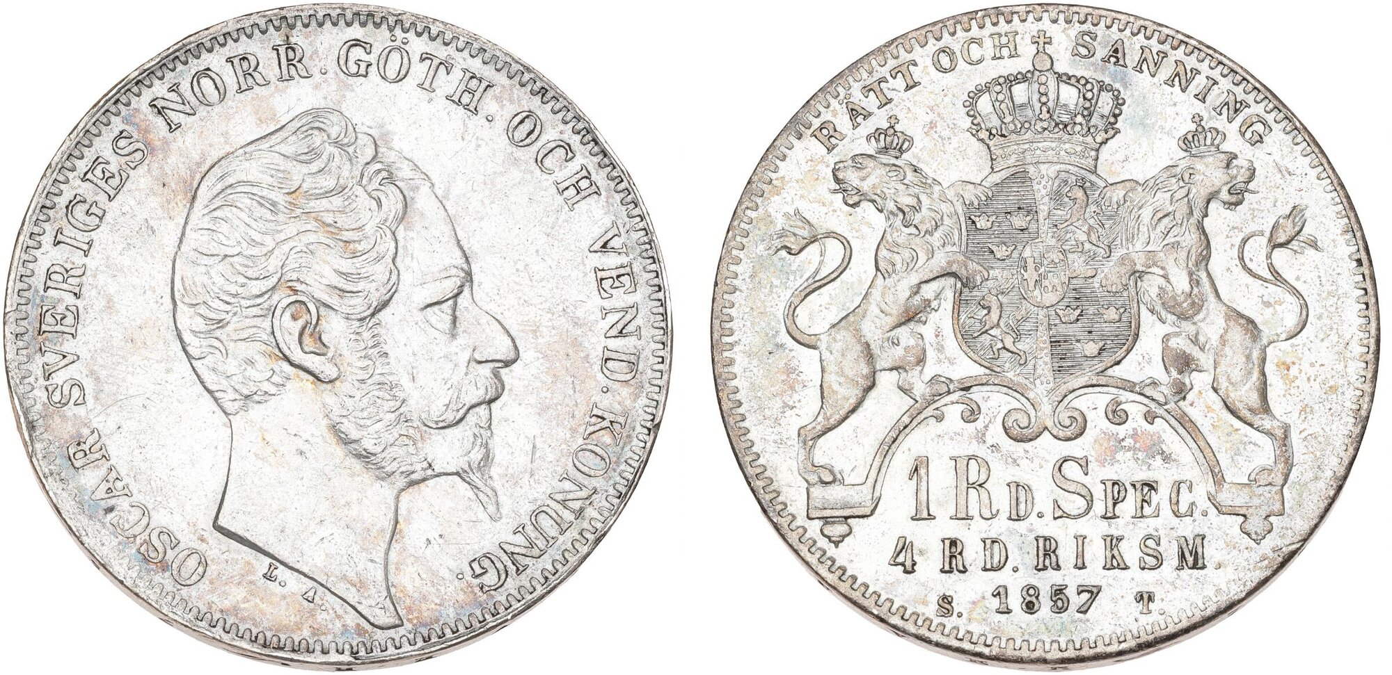 Sweden, Oscar I, 4 rigsdaler rigsmønt 1857 ST, SM 57