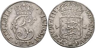 Krone (4 Mark) 1676, unbekannte Münzstätte. Sogenannte "Mysterienkrone". 21.38 g. Hede 68A. Sieg 35.1. Dav. 3635. Selten / Rare. Sehr schön-vorzüglich / Very Fine-Extremely Fine.