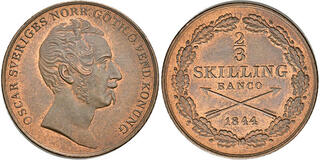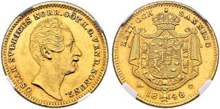 Dukat 1848/4, Stockholm. Kleiner Kopf. Münzmeister Alexander Grandison. Variante mit Überprägung der letzten Jahreszahl. Delzanno 17. AAH 16. Fr. 90a. NGC MS64.