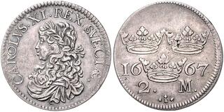 Rv. MONETA. NOVA. REG./ SVEC. Écu couronné accosté de (date).