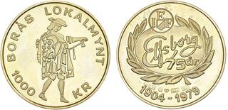Sweden, 1000 kr 1979, "Borås Lokalmynt", IF Elfsborg 75 year, 1904-1979, Au, 18 carat, 18.01 g in box