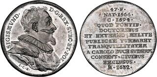 HISTORIEPENNIGEN - HISTORICAL MEDALS - MEDAL - HEDLINGER'S REGNAL LIST - SIGISMUND , SIGISMUND 1592-1599, Sweden Bust right. Rev. Text on twelve rows.SKM 49d.SN - 34 mm. 11.86 g. 01/0. UNC