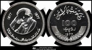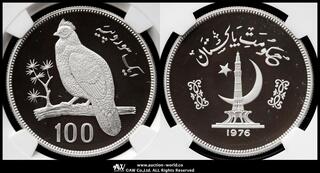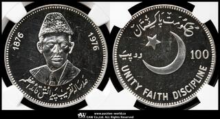 PAKISTAN パキスタン / 100Rupees 1976 / KM-41 モハメッド・アリ・ジンナー生誕100周年 製造1300枚 _ / NGC-MS62DPL プルーフライク -UNC