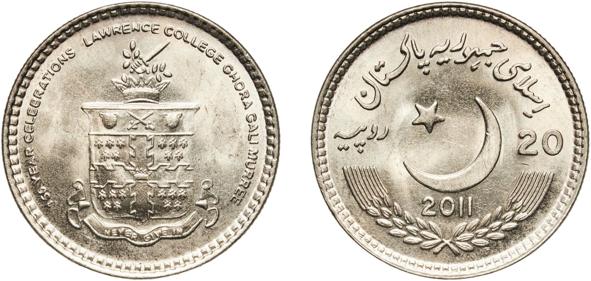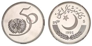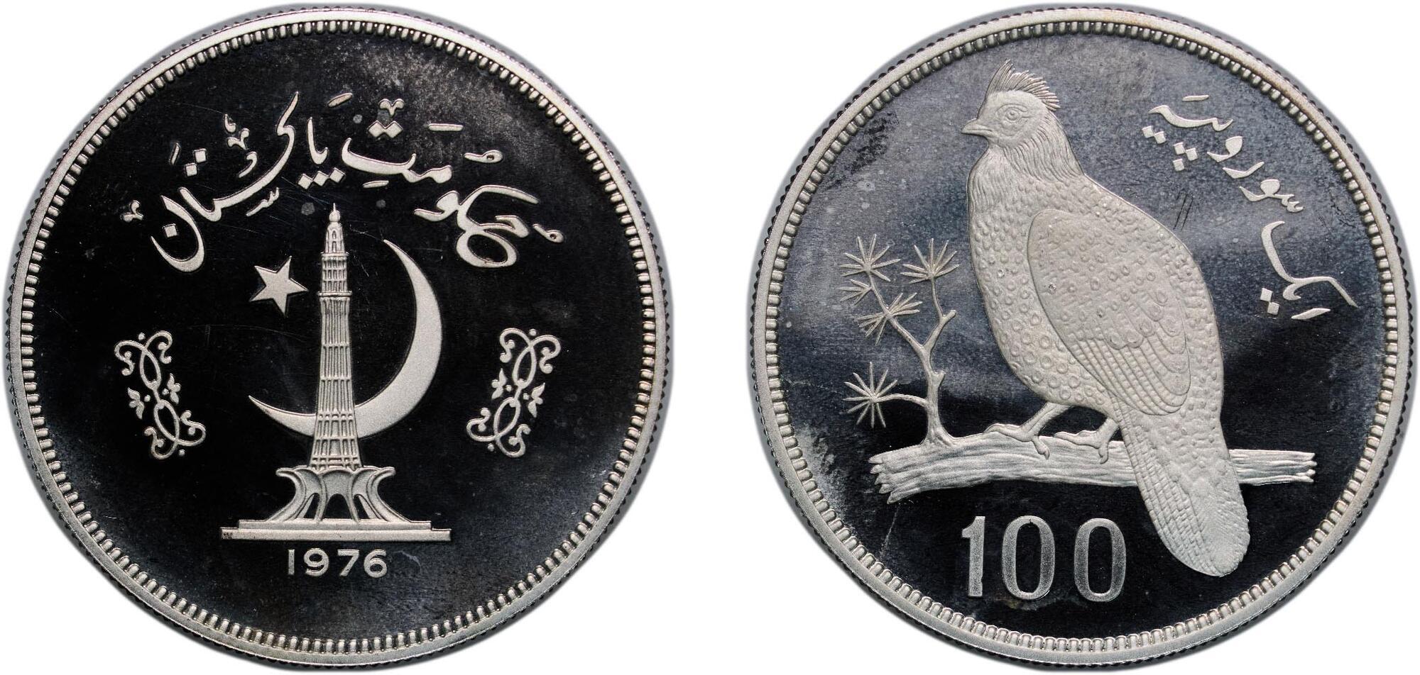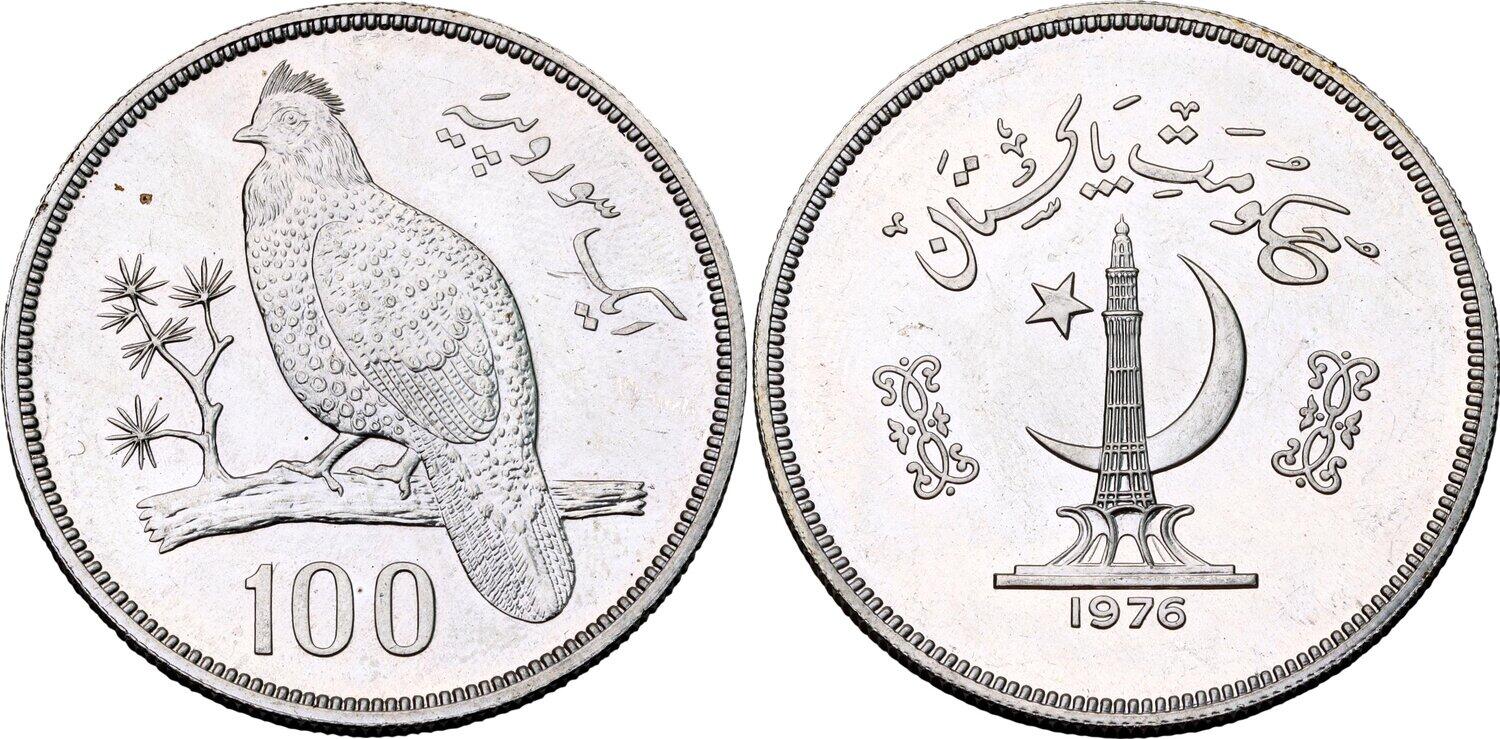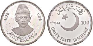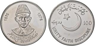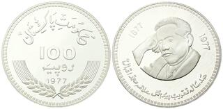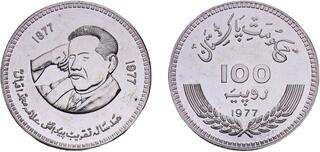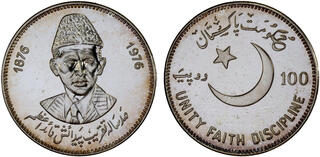 Srebro. Rzadka i pięknie zachowana moneta upamiętniająca 100. rocznicę urodzin Muhammada Ali Jinnaha. Dodatkowo znacznie rzadszy od lustrzanego, wariant wybity stemplem zwykłym. Nakład: 1300 sztuk. Moneta sporadycznie spotykana w handlu. Reference: KM #41