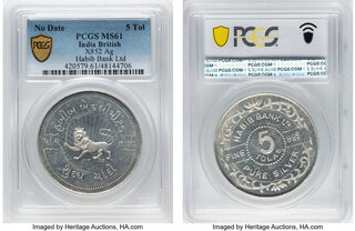 Habib Bank Ltd. Private silver 5 Tolas ND MS61 PCGS, KM-X52. A scarce silver "bullion" Tolas issues from Habib Bank Ltd., not witnessed with our firm since 2009.