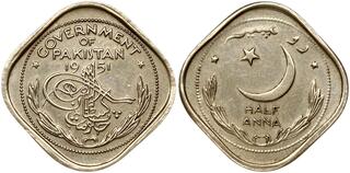 Pakistan. 1/2 Anna 1951, Crescent opens to left; Mint Sport. Medal Alignment. Copper-nickel, 3.14 g.