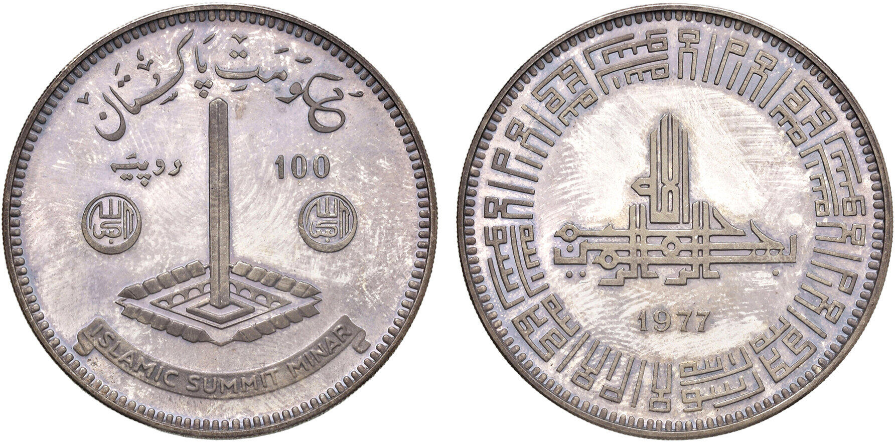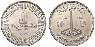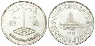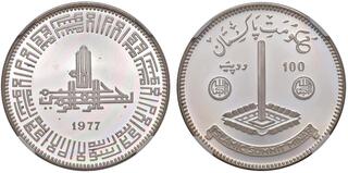 Pakistan Islamic Republic 1977 100 Rupees (Islamic Summit Conference) Silver (.925) (2500) 20.44g PCGS PR 63 KM 47 Schön 49