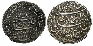 Delhi Sultanate, Suri Dynasty, Sher Shah (AH 945-952 /1538-1545 AD), Shergarh Bakkar urf Shiqq Bakkar Mint (by style), Silver ½ Rupee, Obv: Arabic legend The Kalima Shahada within a square, the four Caliph's names in the margin, Rev: Arabic legend "Sher Shah Sultan khuld Allahu mulkahu", with star mint mark Nagari legend 'Sri Ser Sah' within a square, "Farid ud-dunya wa'l din Abu'l Muzaffar" at the margin "zarb Shergarh Bakkar" off flan at the bottom margin, 5.71g, 22.22mm, (GG # D 805) no... | 7 Nov 2025 | 170,000 INR | |