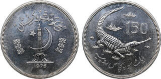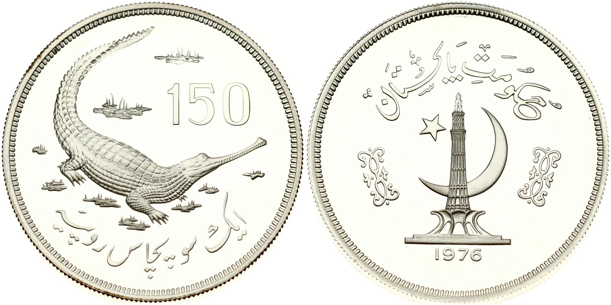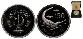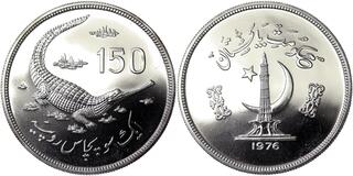 Pakistan, 150 Rupees, 1976, Conservation in Pakistan - Gavial Crocodile. Mintage: 5.637 pcs. Ag.925 35,00 g, KM 42, PROOF