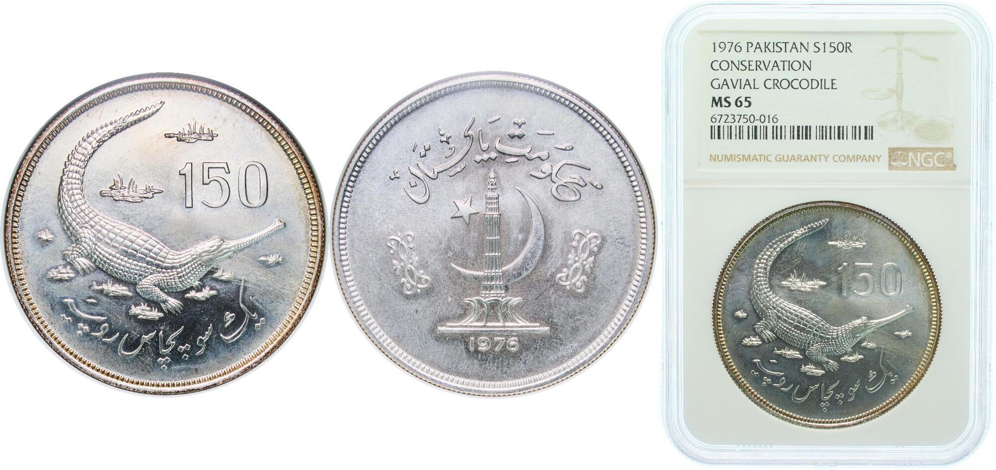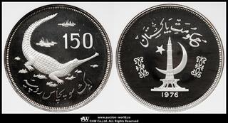 PAKISTAN パキスタン / 150Rupees 1976 / KM-42 野生動物保護シリーズ ガビアルワニ 製造5637枚 / NGC-PF67 Ultra Cameo Proof