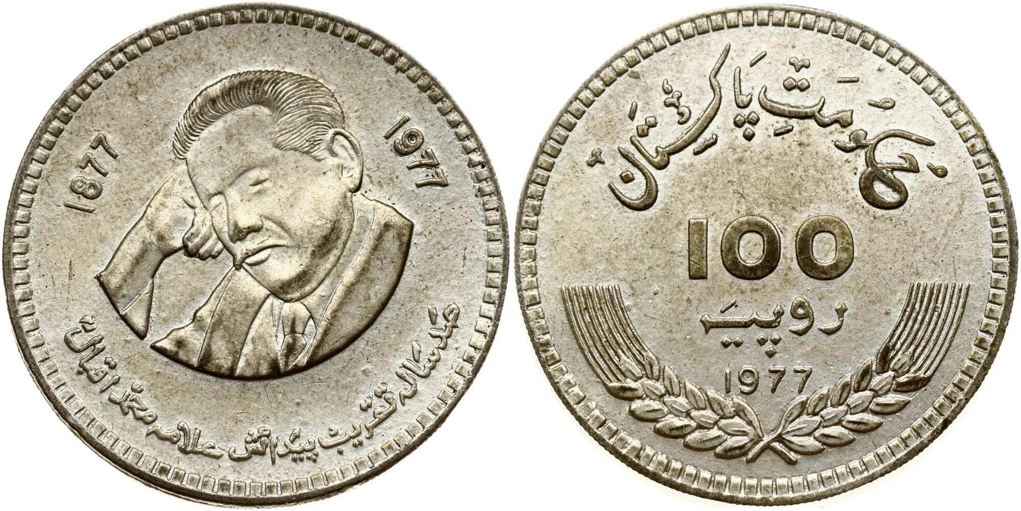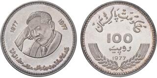 ESTERE - PAKISTAN - Repubblica - 100 Rupie 1977 - 100th Anniversary - Birth of Allama Mohammad Iqbal Kr. 48 R AG 300 pezzi coniati Abilmente lavata