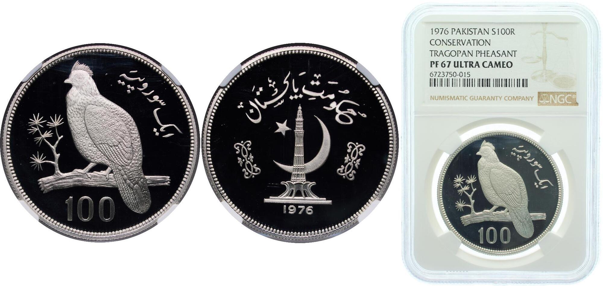 PAKISTAN パキスタン / 100Rupees 1976 / KM-40 野生動物保護シリーズ ジュケイ 製造5837枚 ケース誤表記 / NGC-PF68 Ultra Cameo Proof