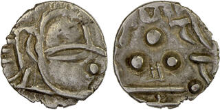 Delhi Sultanate, Suri Dynasty, Sher Shah (AH 945-952 /1538-1545 AD), Shergarh Bakkar urf Shiqq Bakkar Mint (by style), Silver ½ Rupee, Obv: Arabic legend The Kalima Shahada within a square, the four Caliph's names in the margin, Rev: Arabic legend "Sher Shah Sultan khuld Allahu mulkahu", with star mint mark Nagari legend 'Sri Ser Sah' within a square, "Farid ud-dunya wa'l din Abu'l Muzaffar" at the margin "zarb Shergarh Bakkar" off flan at the bottom margin, 5.71g, 22.22mm, (GG # D 805) no... | 7 Nov 2025 | 170,000 INR | |