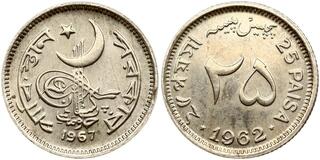 Pakistan. 25 Paisa Dual Date 1962/1967, Pattern. Nickel 2.87 g.