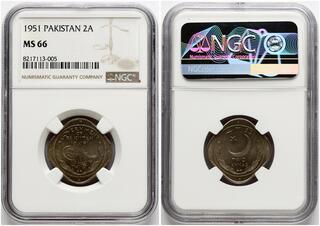 Pakistan. 2 Annas 1951. Copper-nickel. KM 9. NGC MS 66. TOP POP.