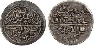 Delhi Sultanate, Suri Dynasty, Sher Shah (AH 945-952 /1538-1545 AD), Shergarh Bakkar urf Shiqq Bakkar Mint (by style), Silver ½ Rupee, Obv: Arabic legend The Kalima Shahada within a square, the four Caliph's names in the margin, Rev: Arabic legend "Sher Shah Sultan khuld Allahu mulkahu", with star mint mark Nagari legend 'Sri Ser Sah' within a square, "Farid ud-dunya wa'l din Abu'l Muzaffar" at the margin "zarb Shergarh Bakkar" off flan at the bottom margin, 5.71g, 22.22mm, (GG # D 805) no... | 7 Nov 2025 | 170,000 INR | |