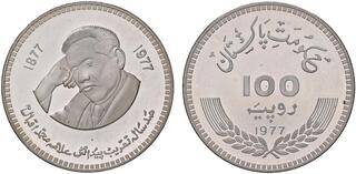ESTERE - PAKISTAN - Repubblica - 100 Rupie 1977 - 100th Anniversary - Birth of Allama Mohammad Iqbal Kr. 48 R AG 300 pezzi coniati Qualche segnetto