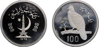 Pakistan. 100 Rupees 1976, Conservation. Silver .925, 28.03 g. Mintage 5 837 pcs. KM 40.