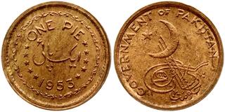 Pakistan. Pie 1955, Restrike. Bronze 1.45 g. as KM 11.